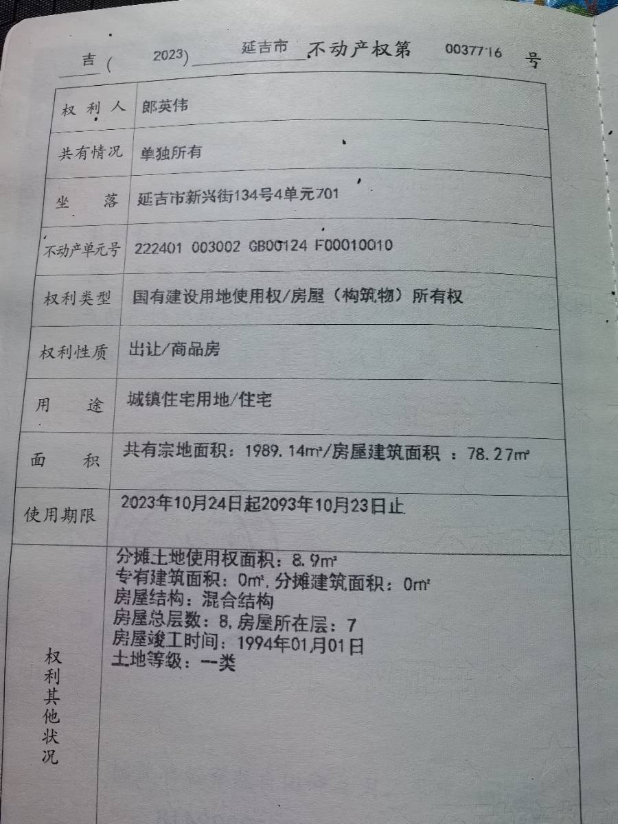 • 小区: 天宇公寓院内南侧(延吉-中心区-附近)